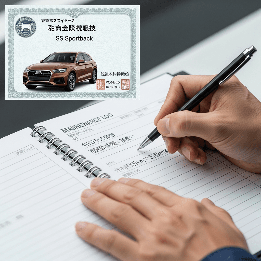 SQ5スポーツバックのようなSUVは4WD性能が価値の源泉。4WDシステム点検とデフオイル交換記録があれば「オフロード性能維持」と高評価され、+8~12万円の査定UPが期待できます。