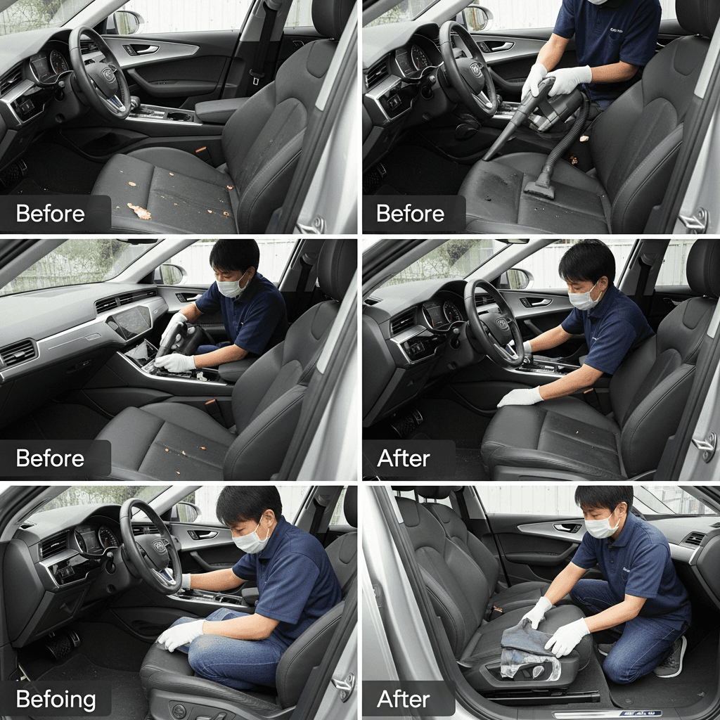 SQ6スポーツバックe-tronは第一印象が査定の8割を決めます。シート隙間のゴミ除去、マット洗浄、樹脂パーツ艶出しで新車級の清潔感に。特に臭いゼロなら「禁煙車」扱いで+5~8万円UP。