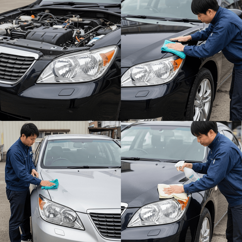 スタリオンはヘッドライトの黄ばみとボディの鉄粉が第一印象を損ねます。研磨+鉄粉除去クリーナー+ワックスで輝きを取り戻せば「程度良好」と判断され+4~7万円の効果。