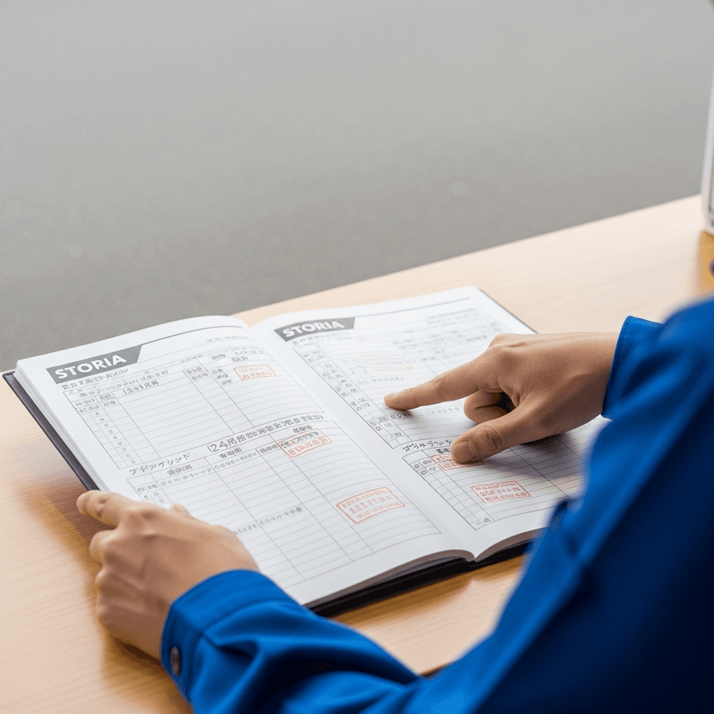ストーリアの整備記録簿に定期点検(12ヶ月・24ヶ月)の履歴が全て記載されていれば「管理の行き届いた車」と高評価。特にエンジンオイル交換履歴は重要で+6~9万円の効果。