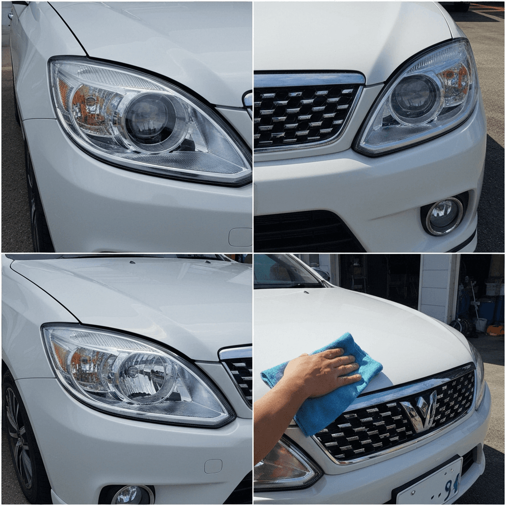 ストーリアはヘッドライトの黄ばみとボディの鉄粉が第一印象を損ねます。研磨+鉄粉除去クリーナー+ワックスで輝きを取り戻せば「程度良好」と判断され+4~7万円の効果。