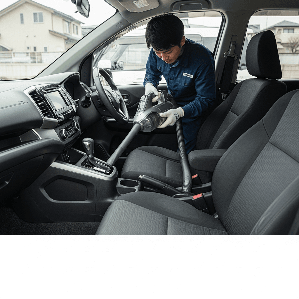 ストラーダは第一印象が査定の8割を決めます。シート隙間のゴミ除去、マット洗浄、樹脂パーツ艶出しで新車級の清潔感に。特に臭いゼロなら「禁煙車」扱いで+5~8万円UP。