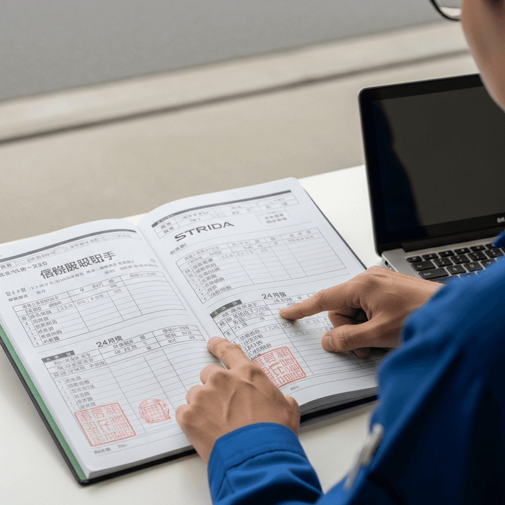 ストラーダの整備記録簿に定期点検(12ヶ月・24ヶ月)の履歴が全て記載されていれば「管理の行き届いた車」と高評価。特にエンジンオイル交換履歴は重要で+6~9万円の効果。