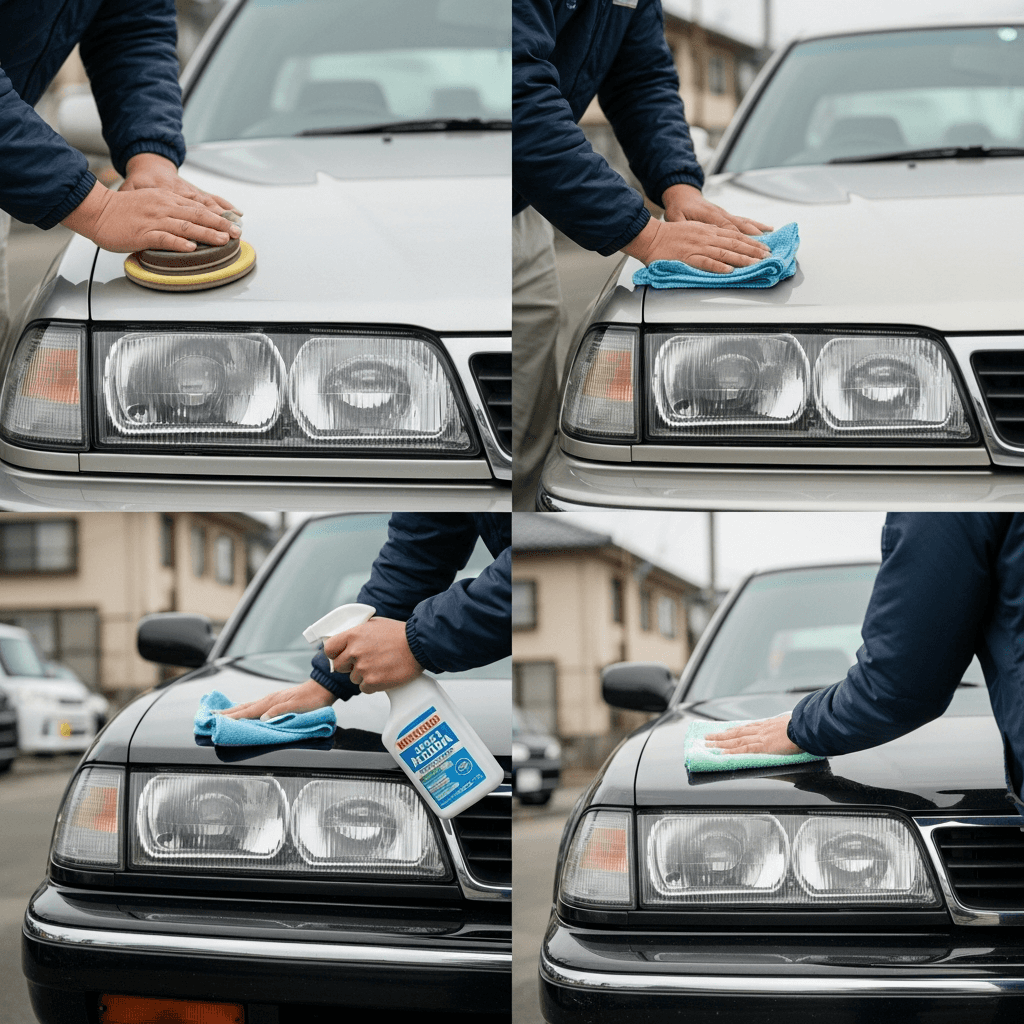 ヘッドライト黄ばみ除去+ボディ鉄粉除去で輝き復活!