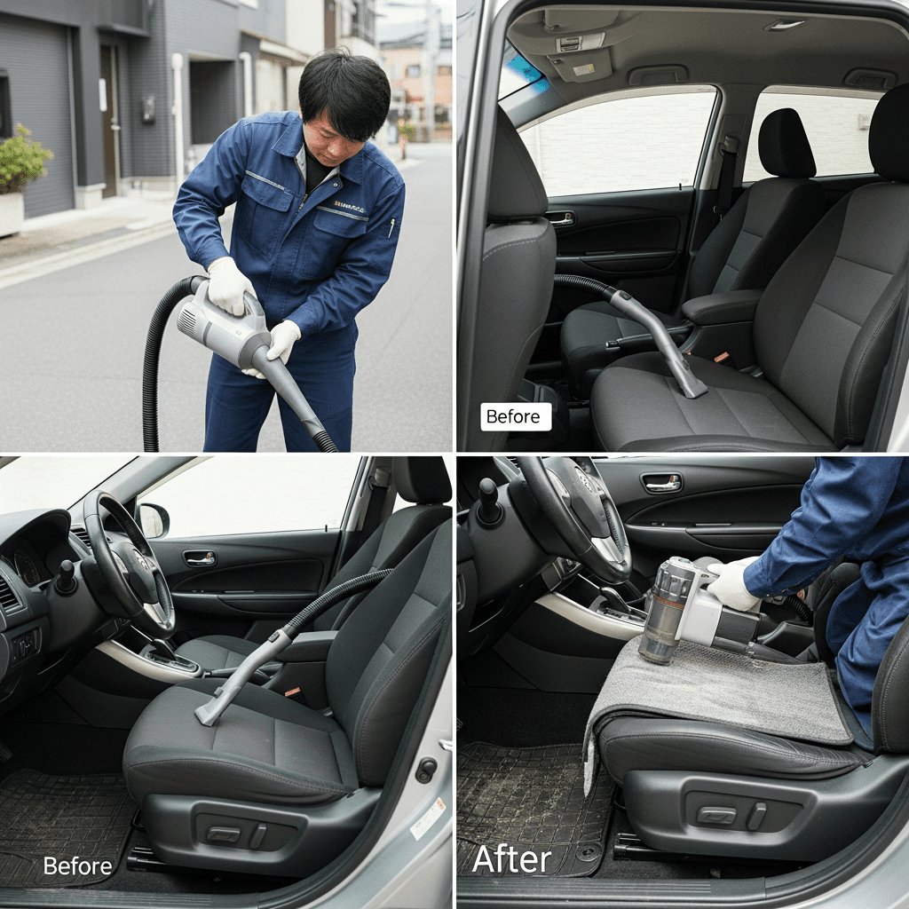 ストリートは第一印象が査定の8割を決めます。シート隙間のゴミ除去、マット洗浄、樹脂パーツ艶出しで新車級の清潔感に。特に臭いゼロなら「禁煙車」扱いで+5~8万円UP。