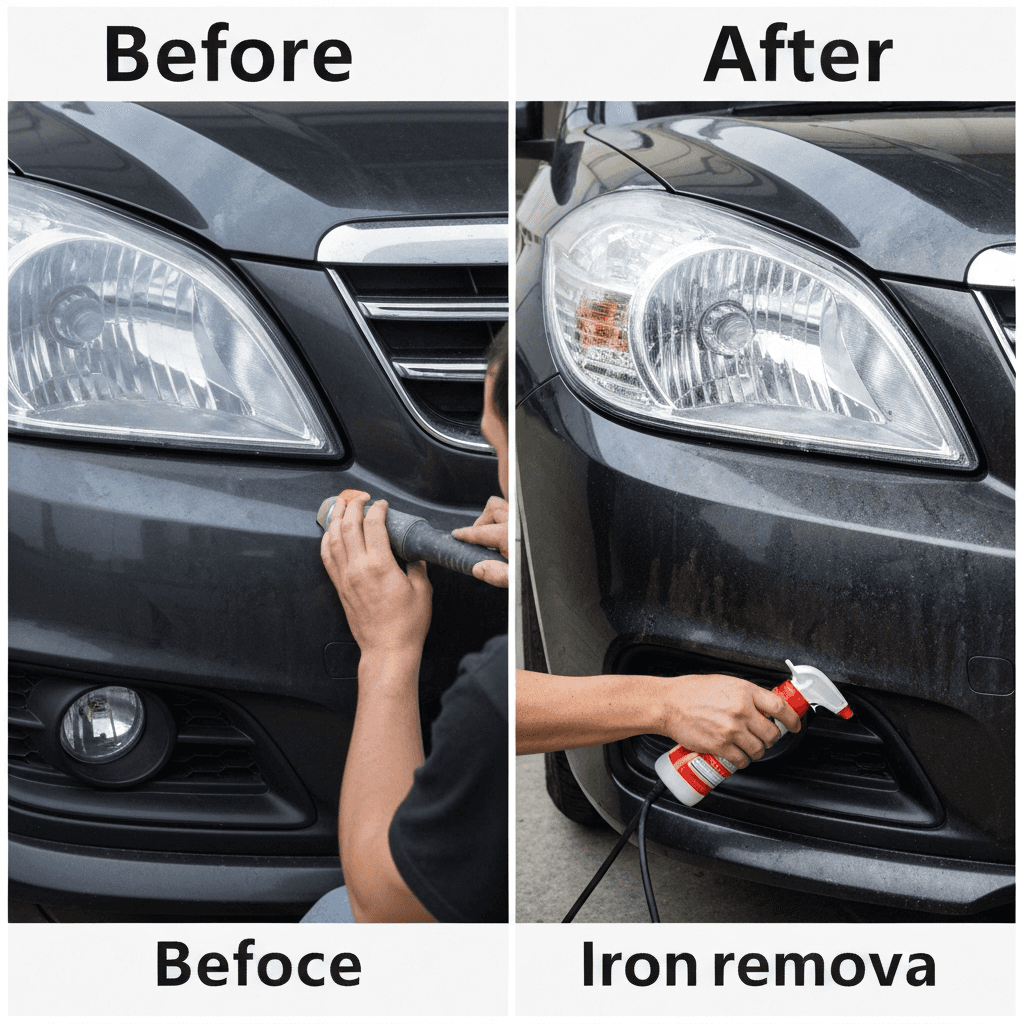 ヘッドライト黄ばみ除去+ボディ鉄粉除去で輝き復活!