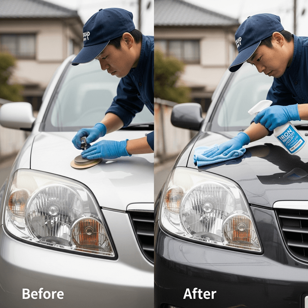 ストリートはヘッドライトの黄ばみとボディの鉄粉が第一印象を損ねます。研磨+鉄粉除去クリーナー+ワックスで輝きを取り戻せば「程度良好」と判断され+4~7万円の効果。