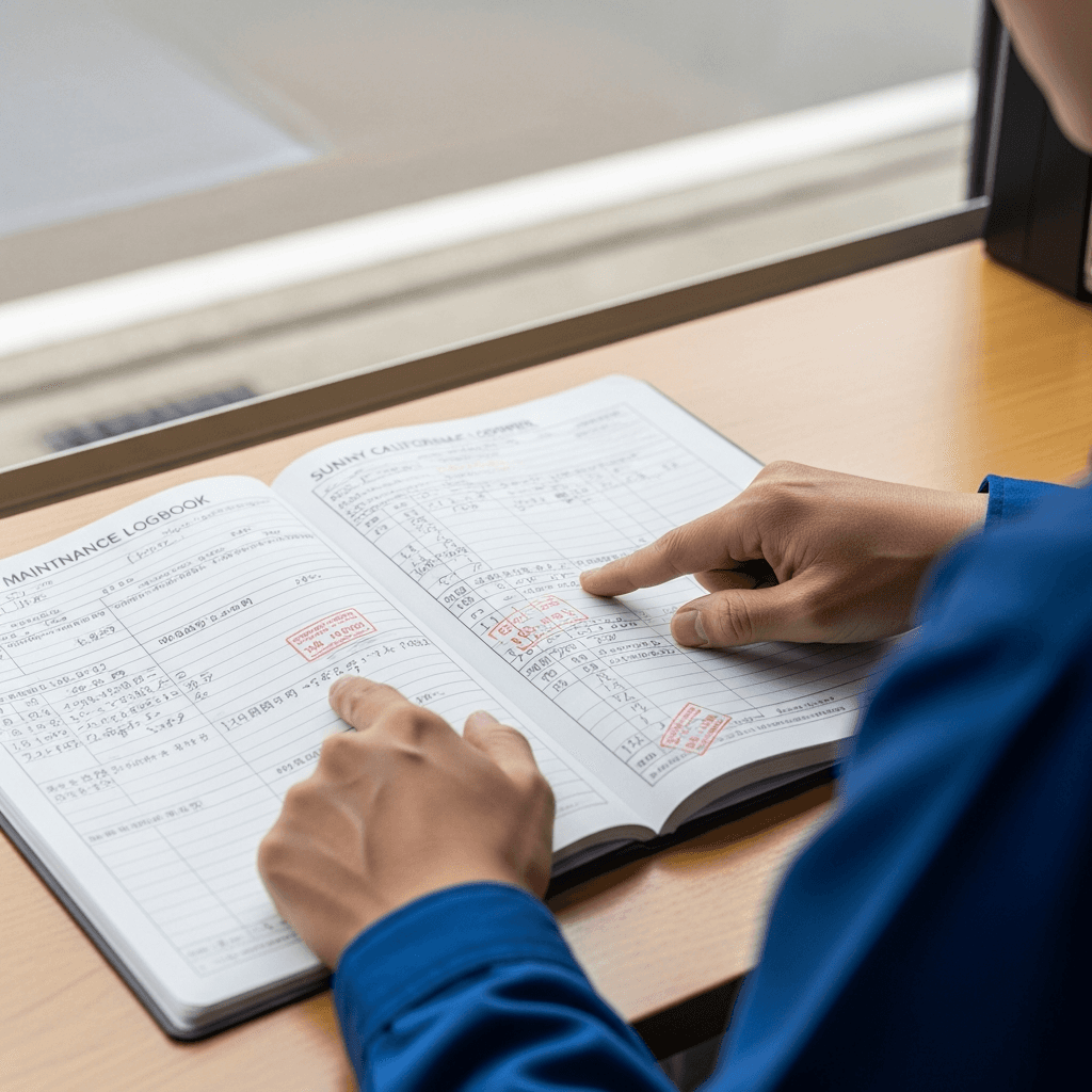サニーカリフォルニアの整備記録簿に定期点検(12ヶ月・24ヶ月)の履歴が全て記載されていれば「管理の行き届いた車」と高評価。特にエンジンオイル交換履歴は重要で+6~9万円の効果。