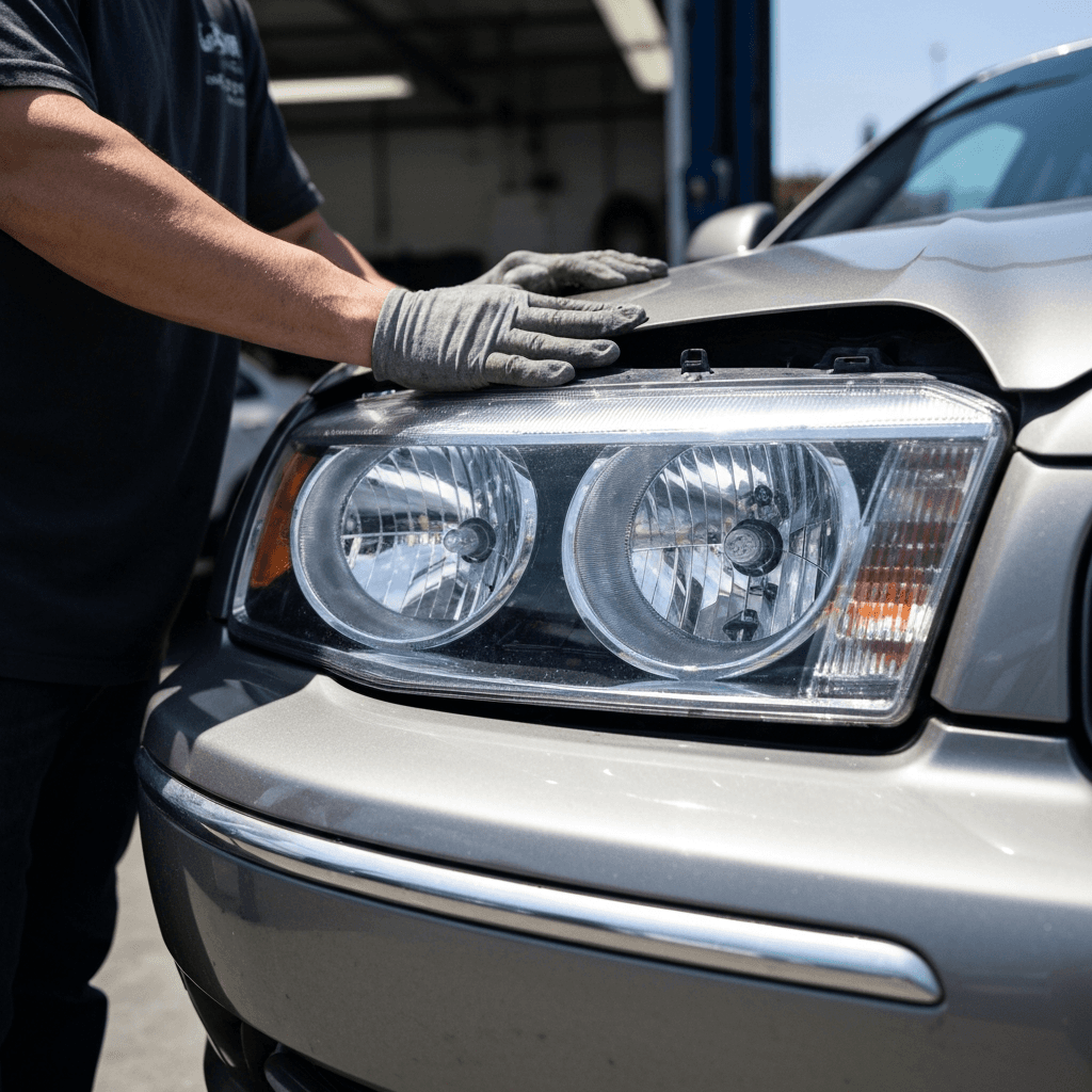 ヘッドライト黄ばみ除去+ボディ鉄粉除去で輝き復活!