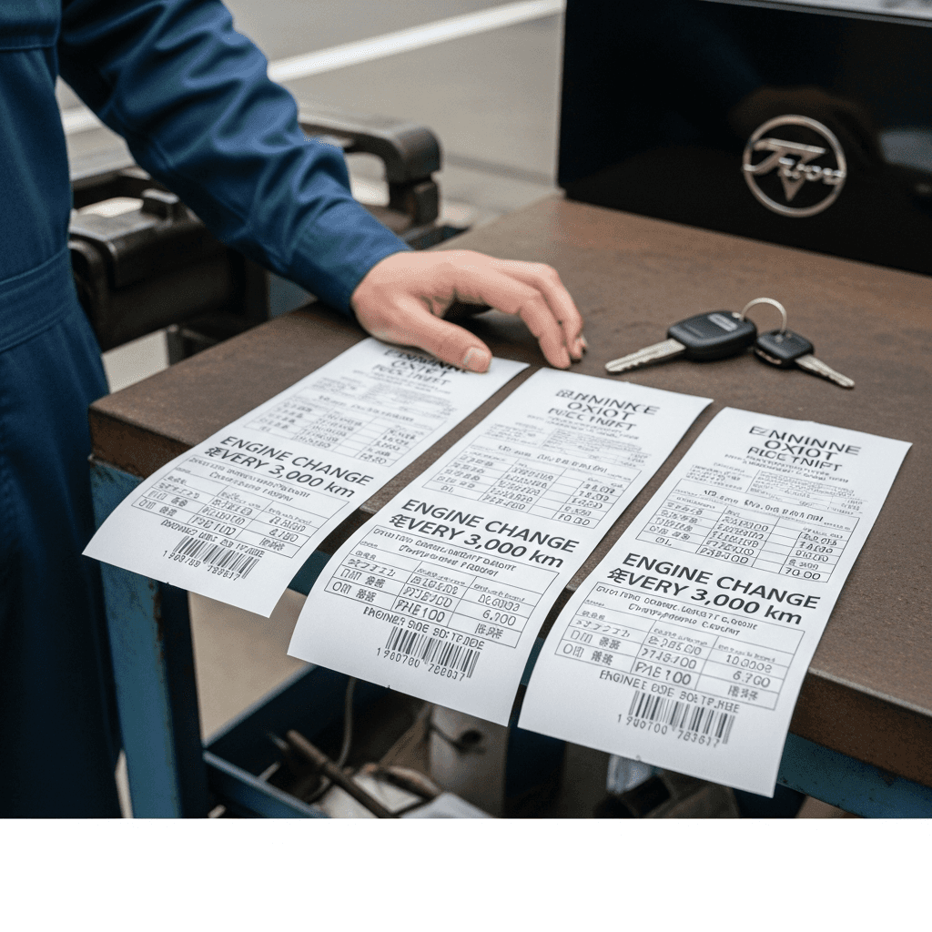 エンジンオイル交換3,000km毎の証明書で信頼獲得!