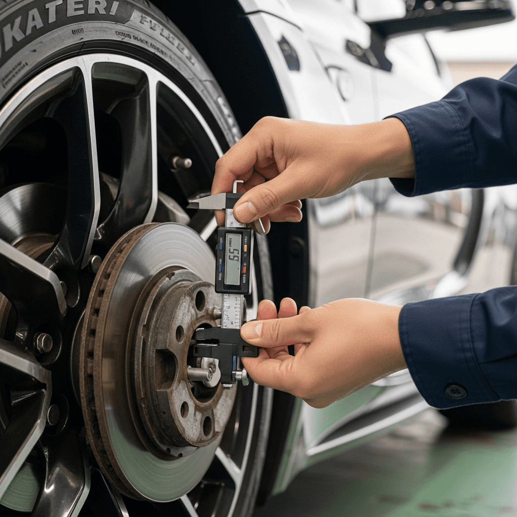 スポーツカーはブレーキとタイヤが査定の最重要項目。パッド残量6mm以上、タイヤ溝5mm以上を写真+ノギス測定値で証明すれば、「走行性能良好」の安心感を与え+8~12万円の評価UP。