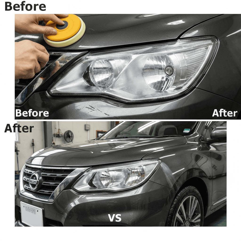 ヘッドライト黄ばみ除去+ボディ鉄粉除去で輝き復活!