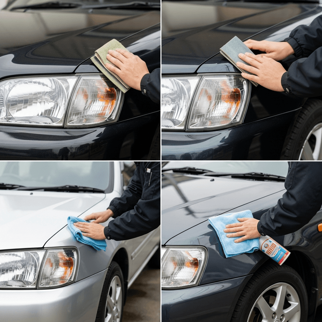 ターセルセダンはヘッドライトの黄ばみとボディの鉄粉が第一印象を損ねます。研磨+鉄粉除去クリーナー+ワックスで輝きを取り戻せば「程度良好」と判断され+4~7万円の効果。