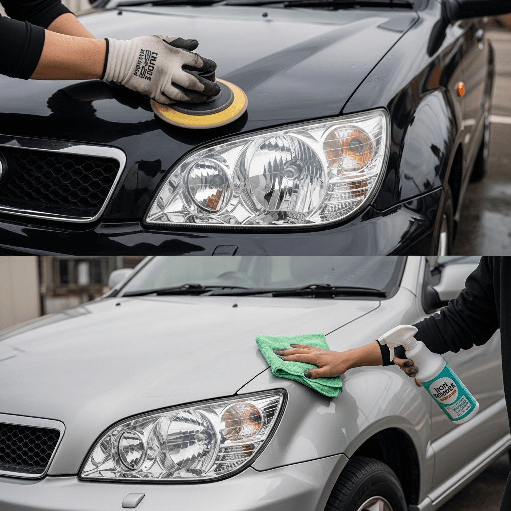 ヘッドライト黄ばみ除去+ボディ鉄粉除去で輝き復活!