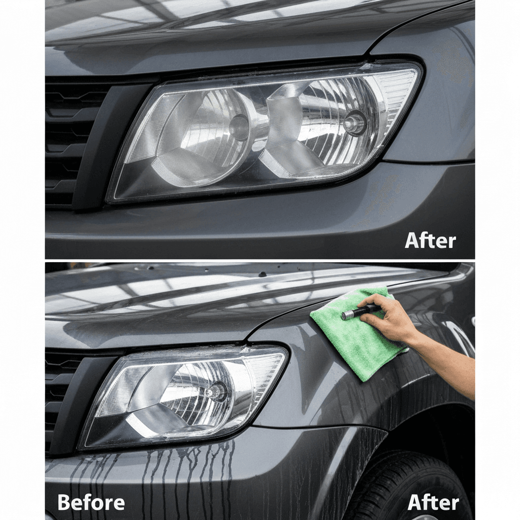 ヘッドライト黄ばみ除去+ボディ鉄粉除去で輝き復活!