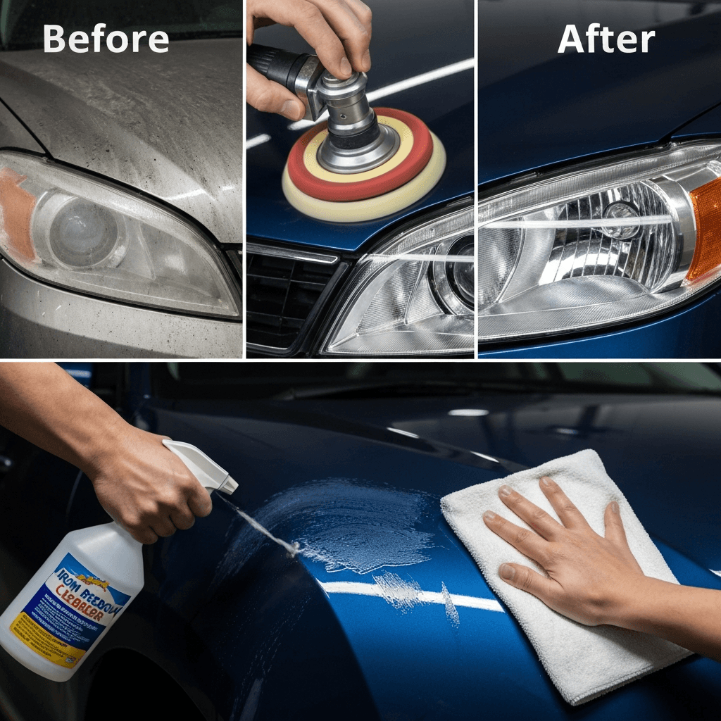 ヘッドライト黄ばみ除去+ボディ鉄粉除去で輝き復活!