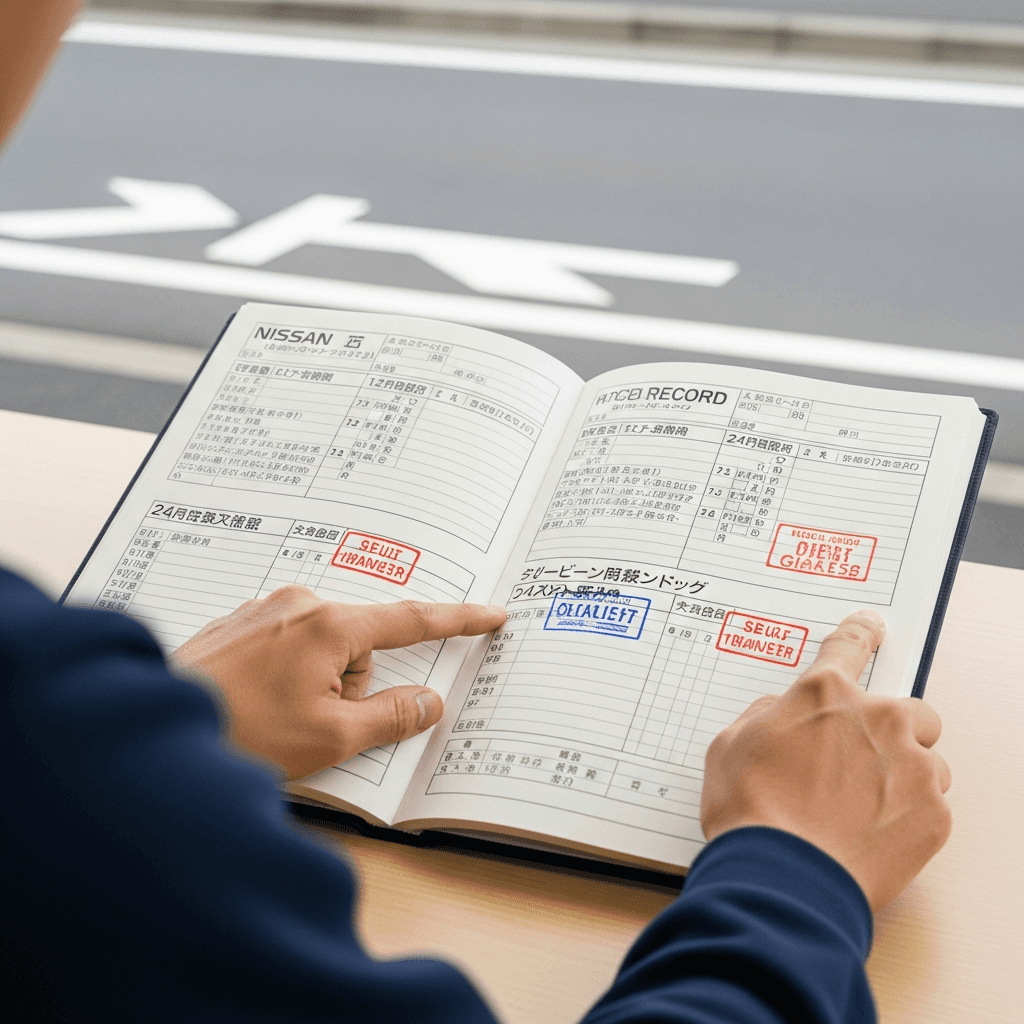 ティーダの整備記録簿に定期点検(12ヶ月・24ヶ月)の履歴が全て記載されていれば「管理の行き届いた車」と高評価。特にエンジンオイル交換履歴は重要で+6~9万円の効果。