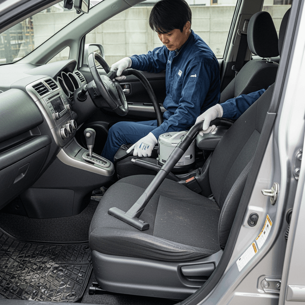 ティーダラティオは第一印象が査定の8割を決めます。シート隙間のゴミ除去、マット洗浄、樹脂パーツ艶出しで新車級の清潔感に。特に臭いゼロなら「禁煙車」扱いで+5~8万円UP。