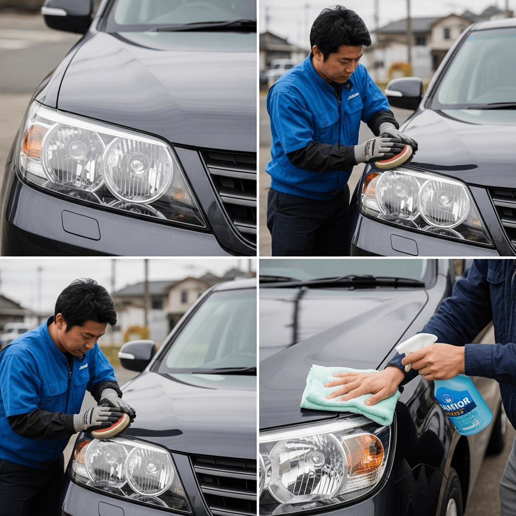 ヘッドライト黄ばみ除去+ボディ鉄粉除去で輝き復活!