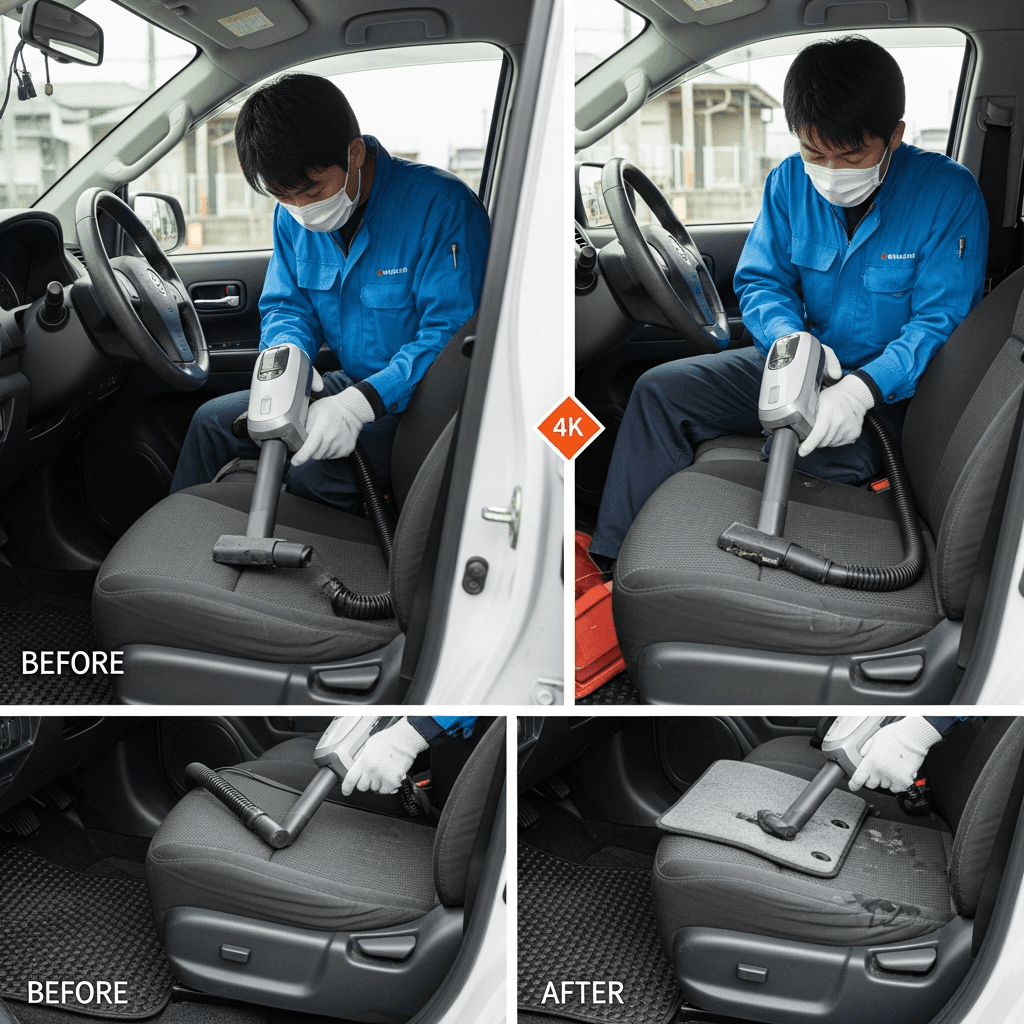 トッポは第一印象が査定の8割を決めます。シート隙間のゴミ除去、マット洗浄、樹脂パーツ艶出しで新車級の清潔感に。特に臭いゼロなら「禁煙車」扱いで+5~8万円UP。