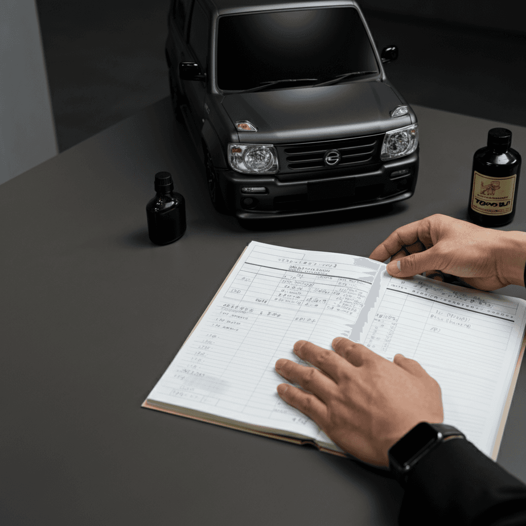 トッポBJの整備記録簿に定期点検(12ヶ月・24ヶ月)の履歴が全て記載されていれば「管理の行き届いた車」と高評価。特にエンジンオイル交換履歴は重要で+6~9万円の効果。