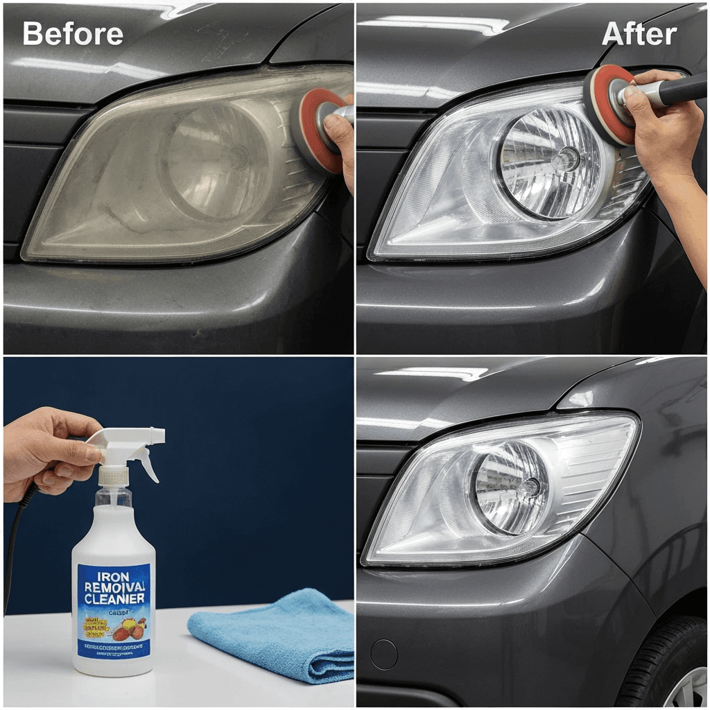 ヘッドライト黄ばみ除去+ボディ鉄粉除去で輝き復活!