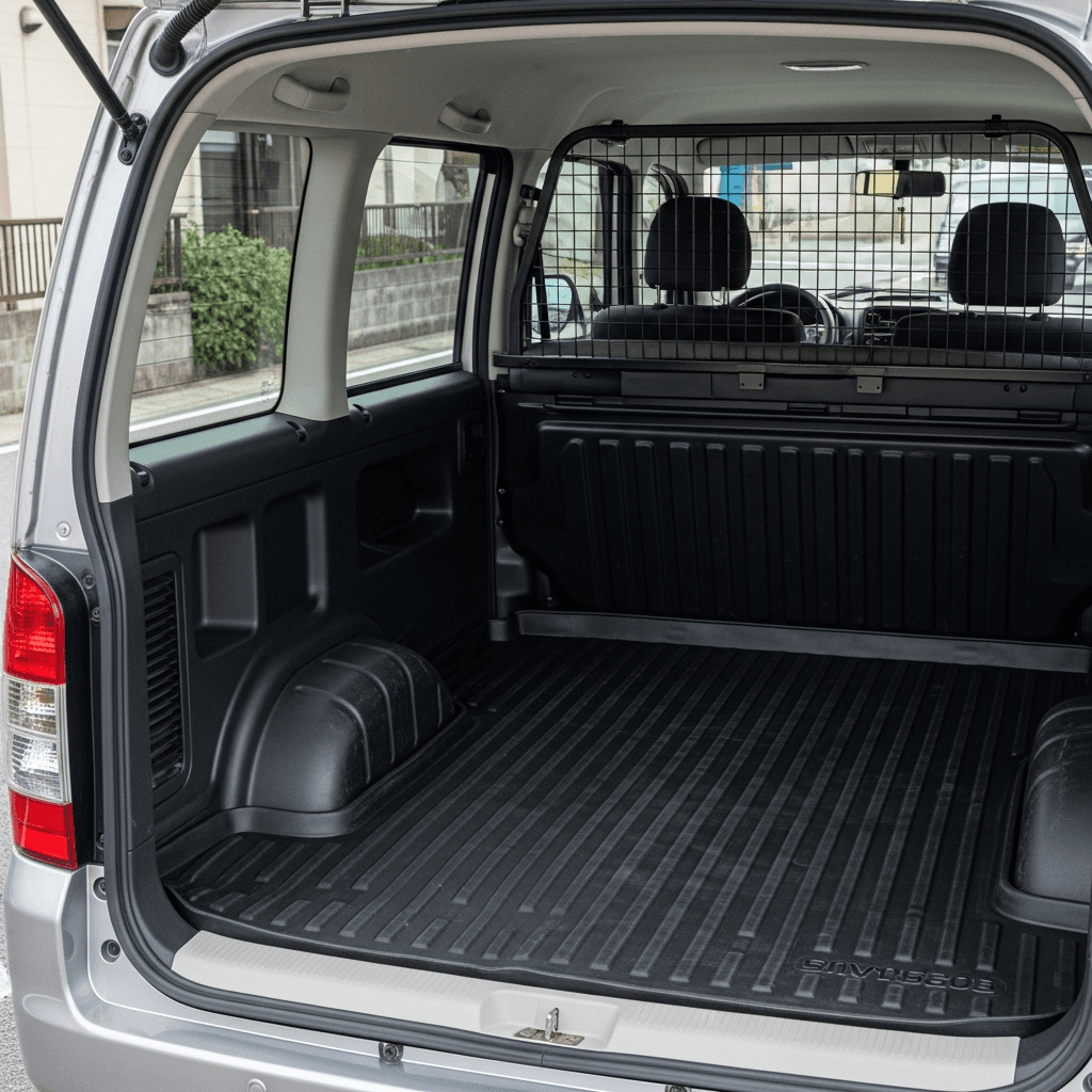 タウンエースバンは商用利用が前提。荷室に保護ゴムマット+仕切り板が装備されていれば「荷室ダメージ最小限」の証明に。実用性重視の商用車で+5~8万円の評価UP。