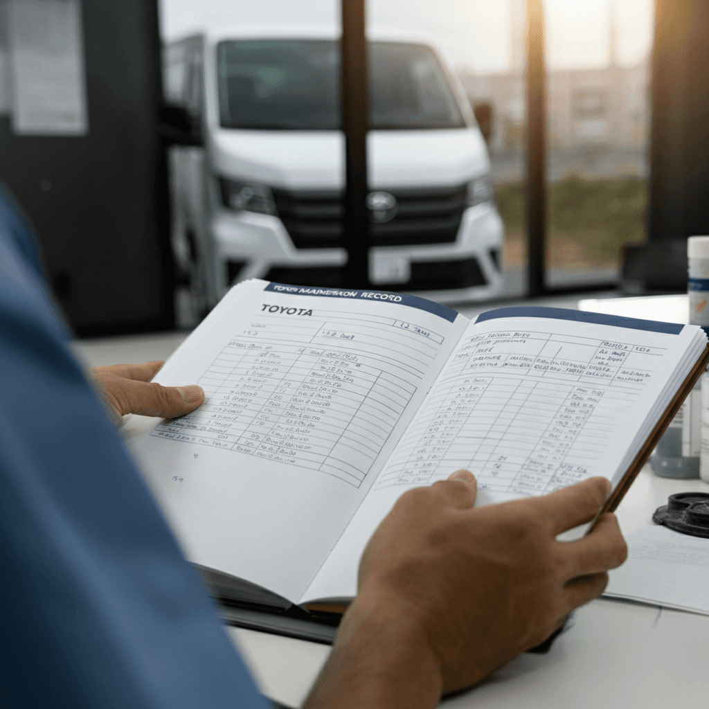トヨエースの整備記録簿に定期点検(12ヶ月・24ヶ月)の履歴が全て記載されていれば「管理の行き届いた車」と高評価。特にエンジンオイル交換履歴は重要で+6~9万円の効果。