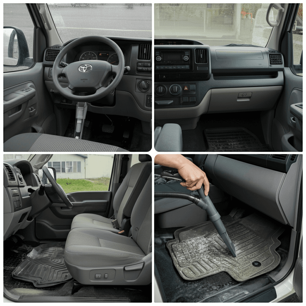 トヨエースは第一印象が査定の8割を決めます。シート隙間のゴミ除去、マット洗浄、樹脂パーツ艶出しで新車級の清潔感に。特に臭いゼロなら「禁煙車」扱いで+5~8万円UP。
