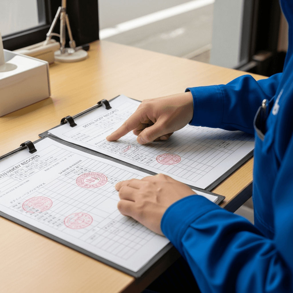 トライトンの整備記録簿に定期点検(12ヶ月・24ヶ月)の履歴が全て記載されていれば「管理の行き届いた車」と高評価。特にエンジンオイル交換履歴は重要で+6~9万円の効果。