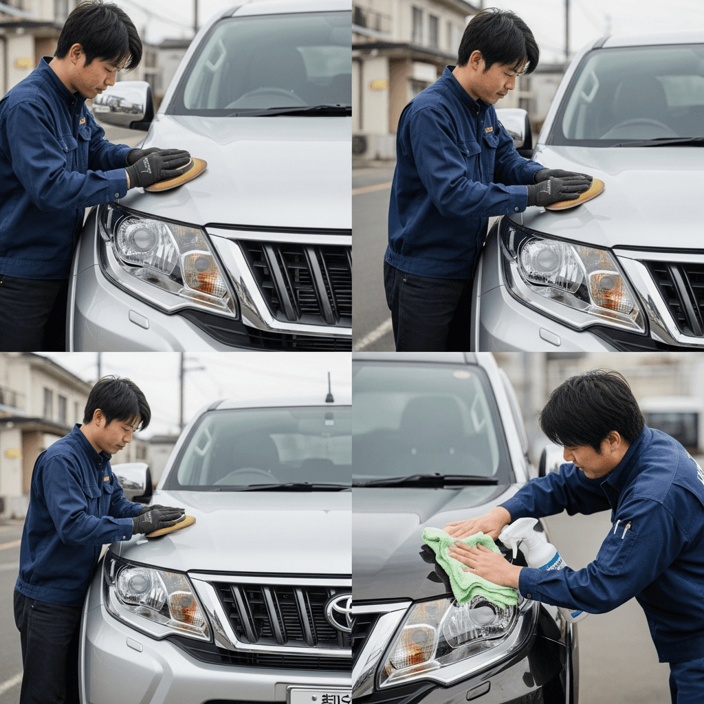 トライトンはヘッドライトの黄ばみとボディの鉄粉が第一印象を損ねます。研磨+鉄粉除去クリーナー+ワックスで輝きを取り戻せば「程度良好」と判断され+4~7万円の効果。