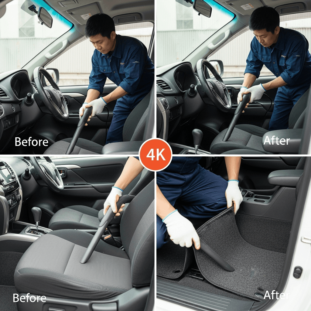 トライトンは第一印象が査定の8割を決めます。シート隙間のゴミ除去、マット洗浄、樹脂パーツ艶出しで新車級の清潔感に。特に臭いゼロなら「禁煙車」扱いで+5~8万円UP。