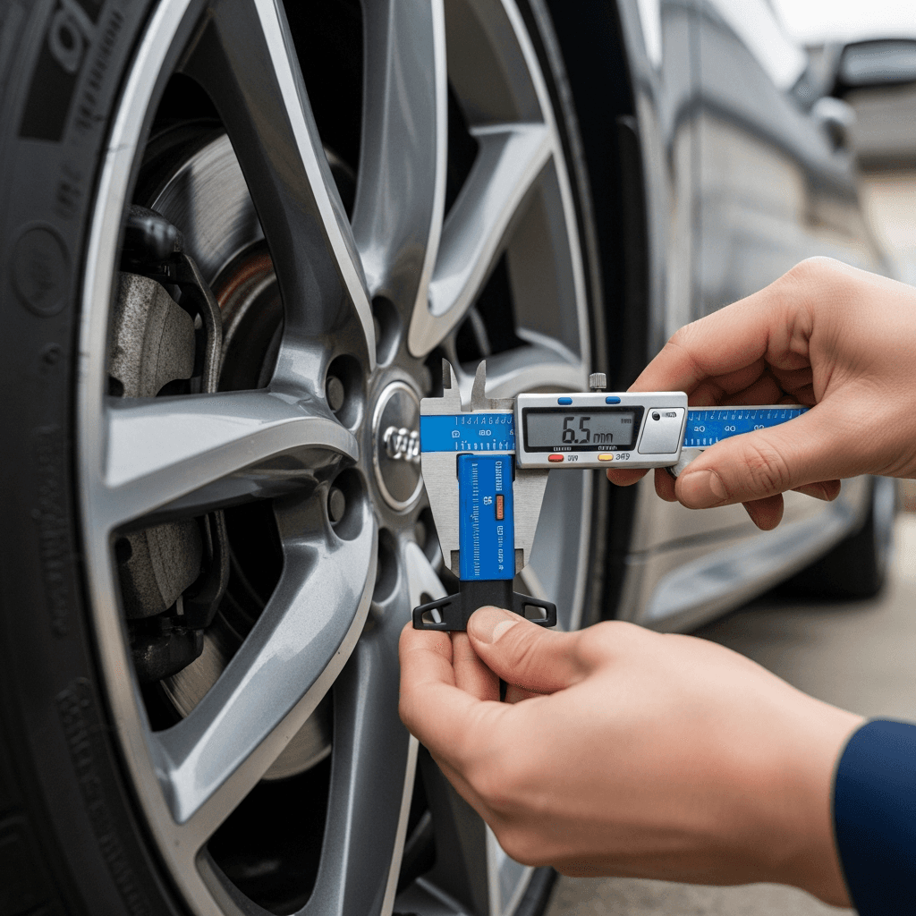 スポーツカーはブレーキとタイヤが査定の最重要項目。パッド残量6mm以上、タイヤ溝5mm以上を写真+ノギス測定値で証明すれば、「走行性能良好」の安心感を与え+8~12万円の評価UP。