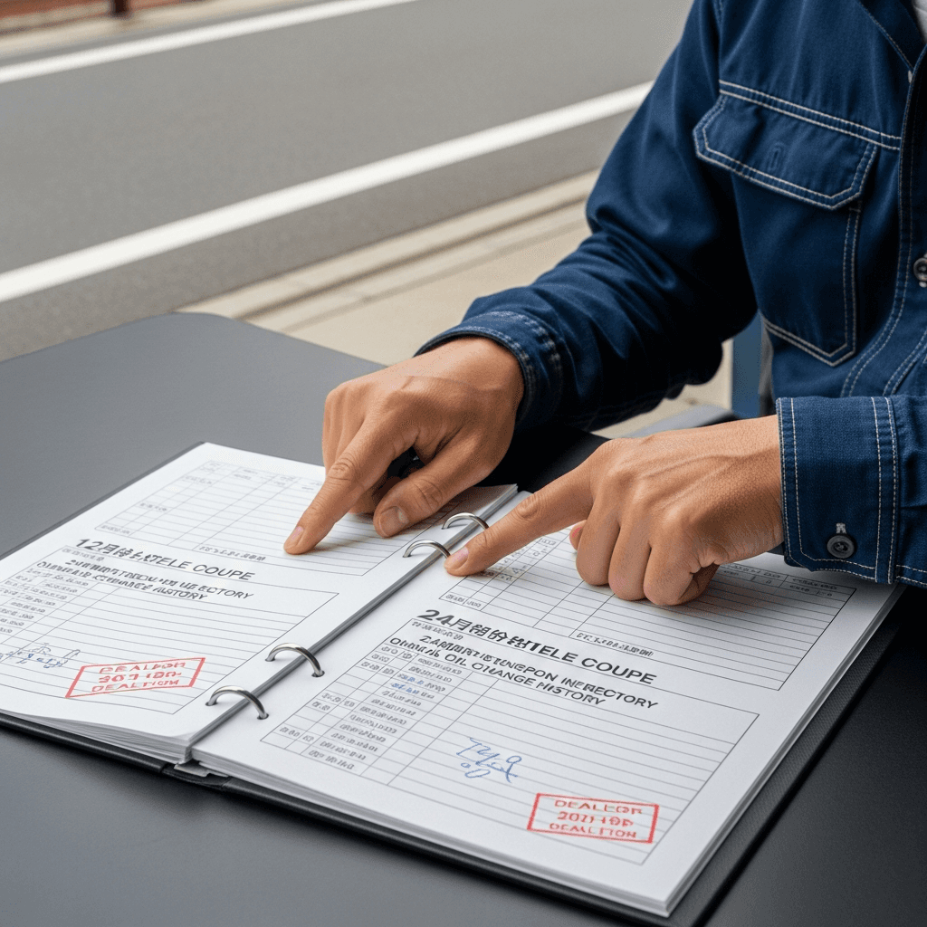 TTSクーペの整備記録簿に定期点検(12ヶ月・24ヶ月)の履歴が全て記載されていれば「管理の行き届いた車」と高評価。特にエンジンオイル交換履歴は重要で+6~9万円の効果。