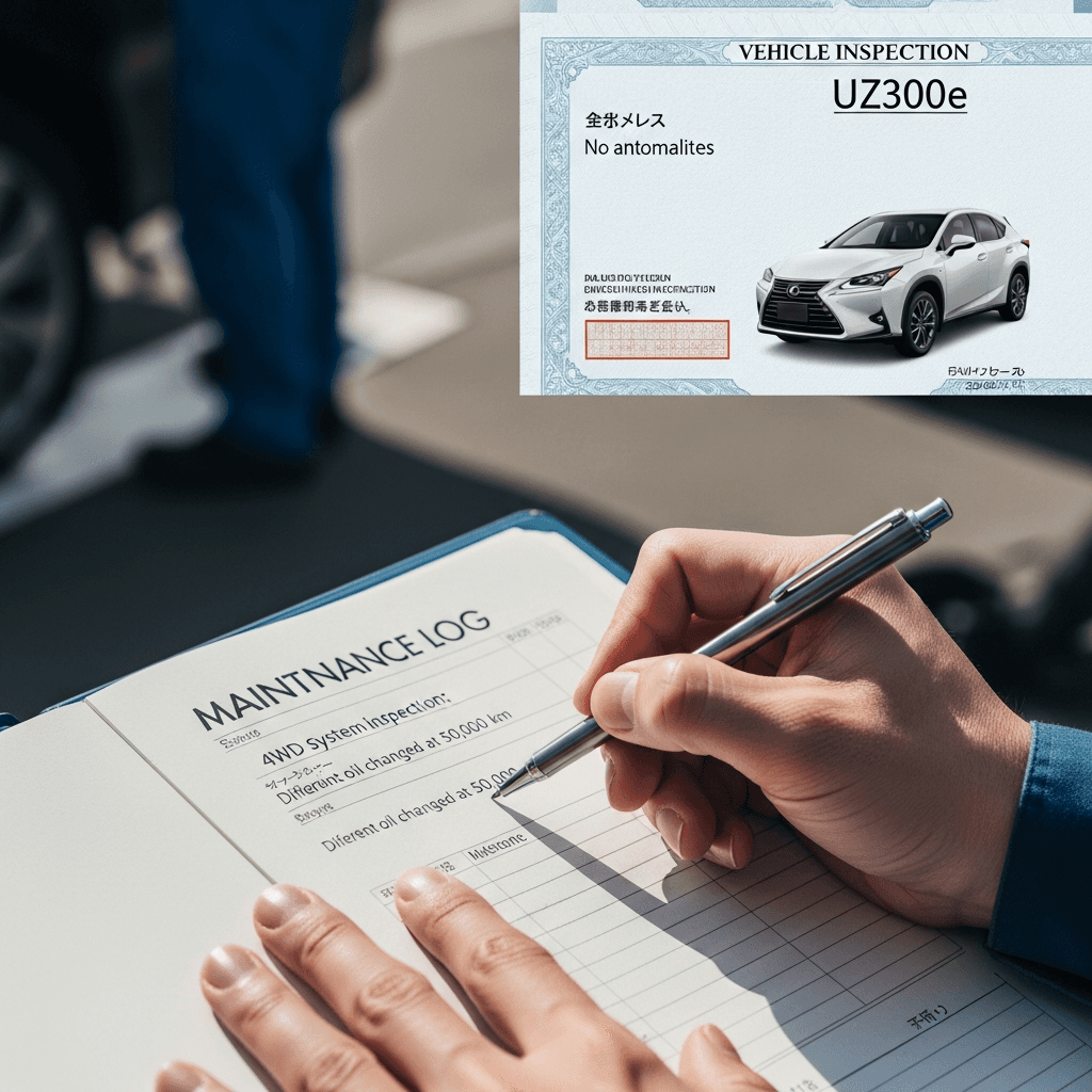 UX300eのようなSUVは4WD性能が価値の源泉。4WDシステム点検とデフオイル交換記録があれば「オフロード性能維持」と高評価され、+8~12万円の査定UPが期待できます。