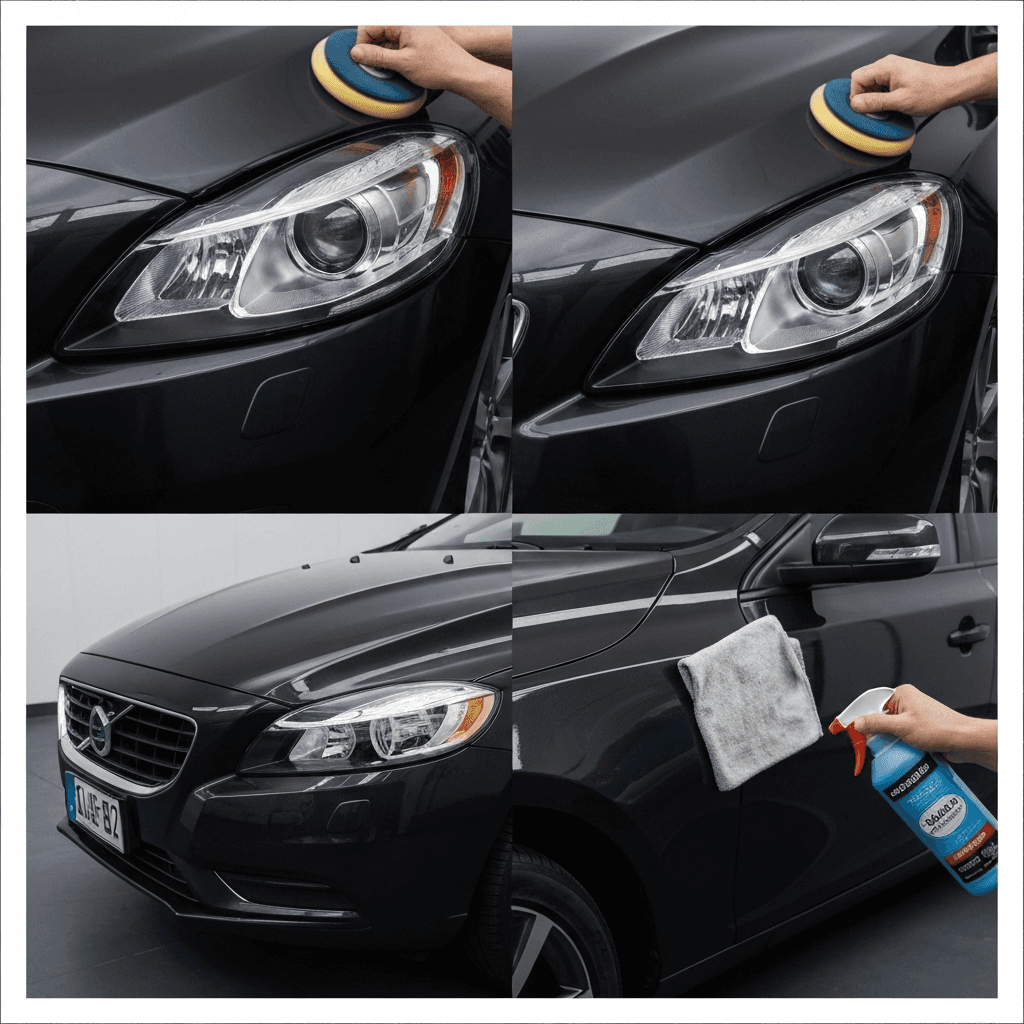 V40はヘッドライトの黄ばみとボディの鉄粉が第一印象を損ねます。研磨+鉄粉除去クリーナー+ワックスで輝きを取り戻せば「程度良好」と判断され+4~7万円の効果。