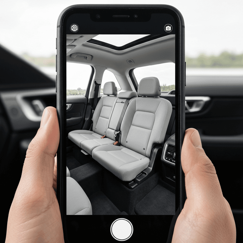 V60に3列目シートがある場合、格納機構の故障が査定リスク。スムーズに格納・展開する様子をスマホ動画で撮影すれば「機構正常」の安心感で+3~6万円UP。