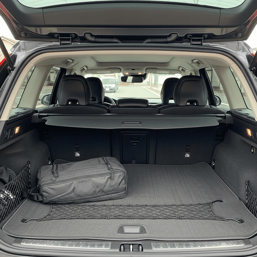 V70のようなワゴンは荷室の実用性が価値の源泉。荷室保護マット+純正ラゲッジネット+仕切り板が揃っていれば「荷室ダメージなし」で+5~8万円の評価UP。