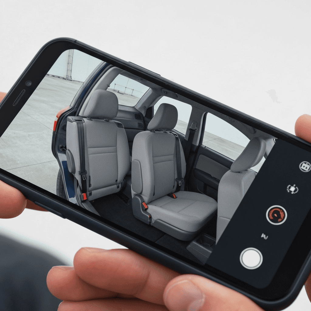V70XCに3列目シートがある場合、格納機構の故障が査定リスク。スムーズに格納・展開する様子をスマホ動画で撮影すれば「機構正常」の安心感で+3~6万円UP。