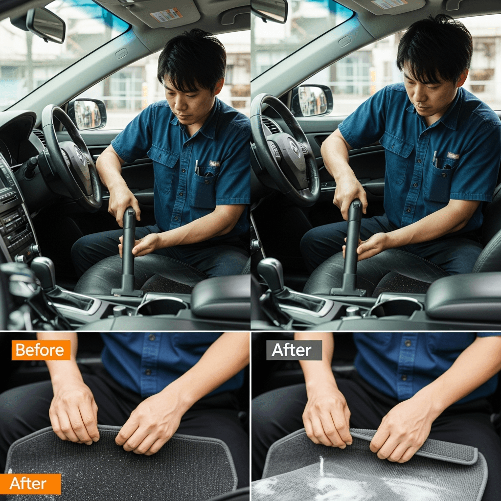 V8は第一印象が査定の8割を決めます。シート隙間のゴミ除去、マット洗浄、樹脂パーツ艶出しで新車級の清潔感に。特に臭いゼロなら「禁煙車」扱いで+5~8万円UP。