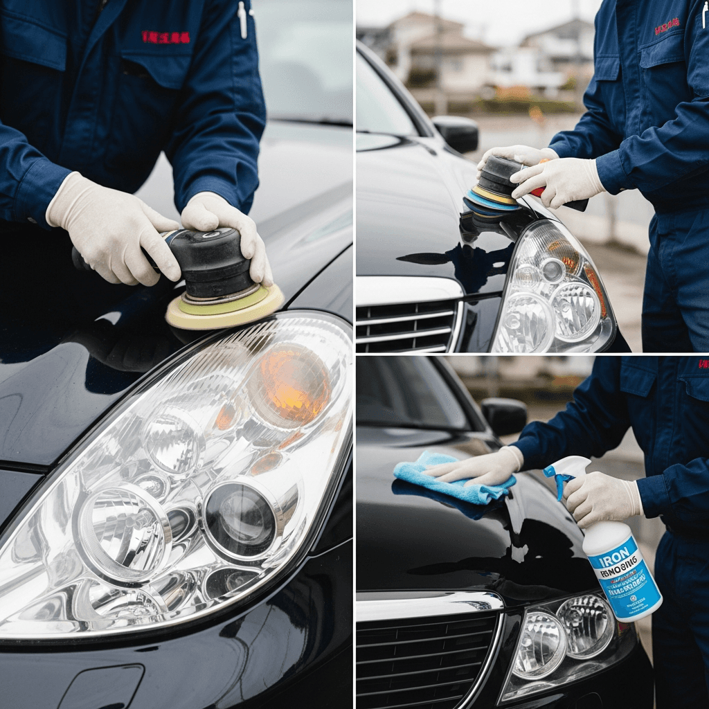 ヘッドライト黄ばみ除去+ボディ鉄粉除去で輝き復活!