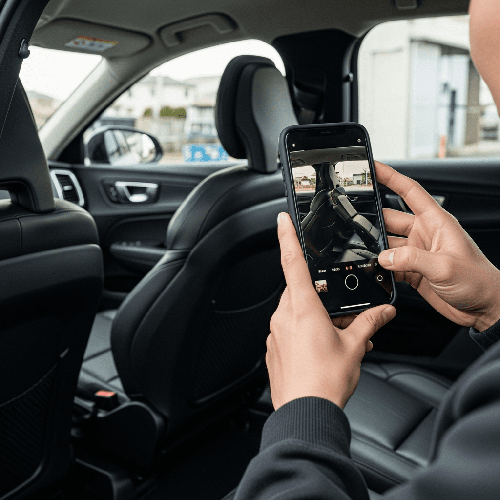 V90に3列目シートがある場合、格納機構の故障が査定リスク。スムーズに格納・展開する様子をスマホ動画で撮影すれば「機構正常」の安心感で+3~6万円UP。
