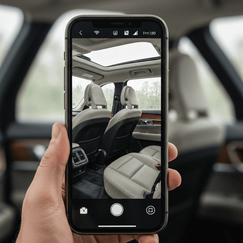 V90クロスカントリーに3列目シートがある場合、格納機構の故障が査定リスク。スムーズに格納・展開する様子をスマホ動画で撮影すれば「機構正常」の安心感で+3~6万円UP。