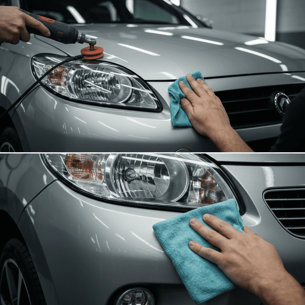 ヘッドライト黄ばみ除去+ボディ鉄粉除去で輝き復活!
