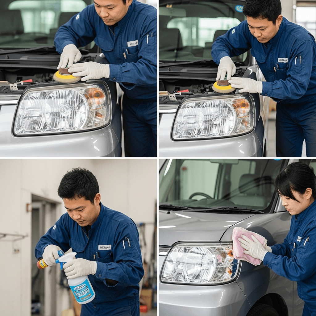 ヘッドライト黄ばみ除去+ボディ鉄粉除去で輝き復活!