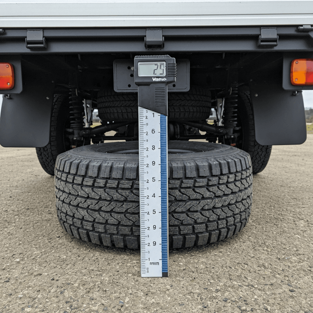 商用車はタイヤが消耗品。4本新品(または溝8mm以上)+スペアタイヤ完備なら「すぐ業務使用可能」で+4~7万円UP。特にバネットトラックは配送業需要が高く効果大。