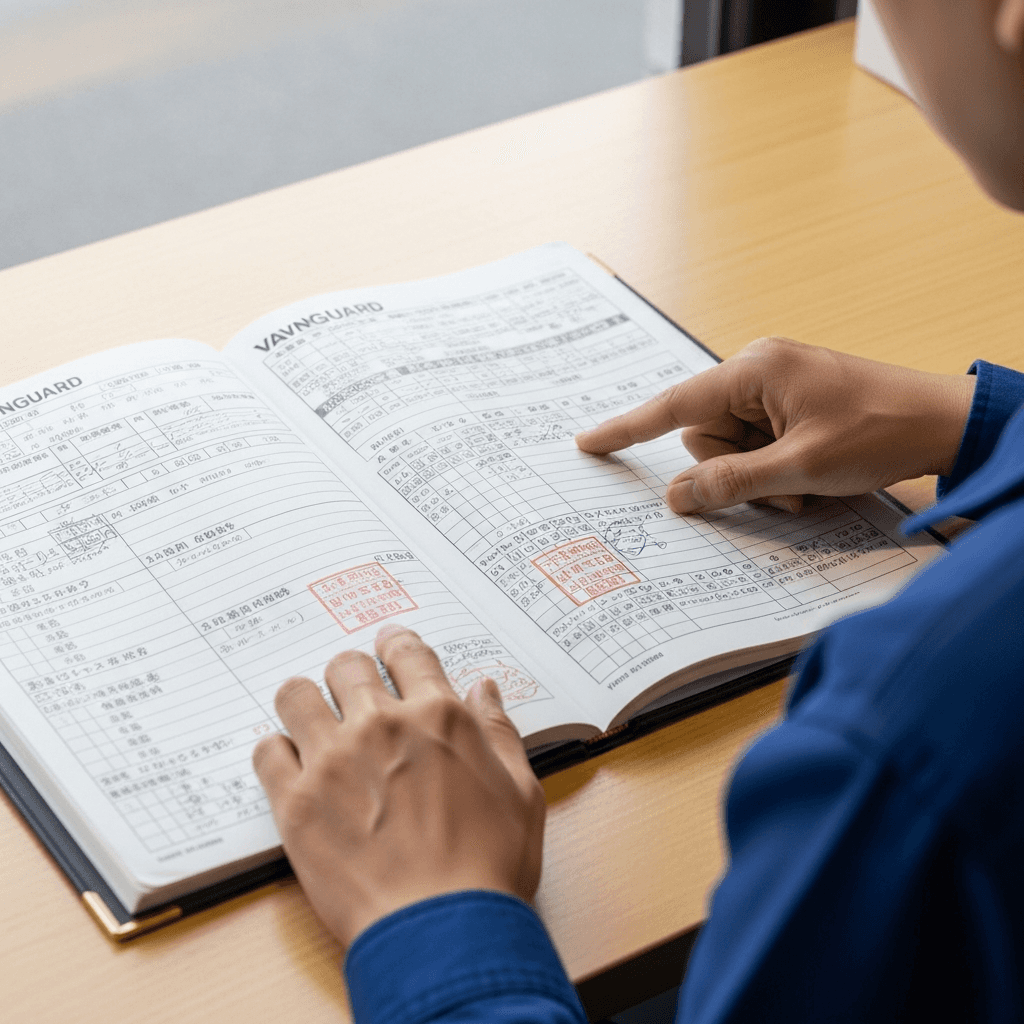 ヴァンガードの整備記録簿に定期点検(12ヶ月・24ヶ月)の履歴が全て記載されていれば「管理の行き届いた車」と高評価。特にエンジンオイル交換履歴は重要で+6~9万円の効果。