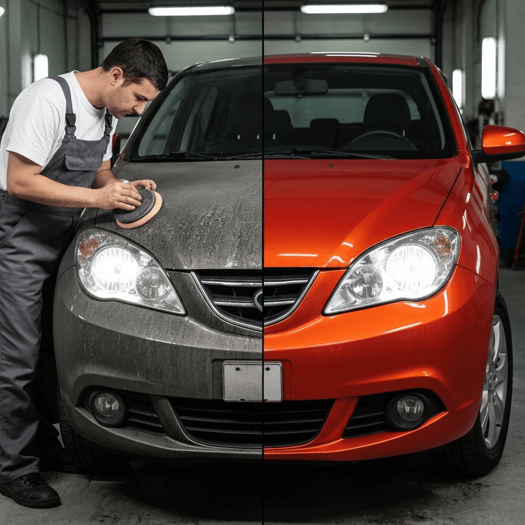 ベリーサはヘッドライトの黄ばみとボディの鉄粉が第一印象を損ねます。研磨+鉄粉除去クリーナー+ワックスで輝きを取り戻せば「程度良好」と判断され+4~7万円の効果。