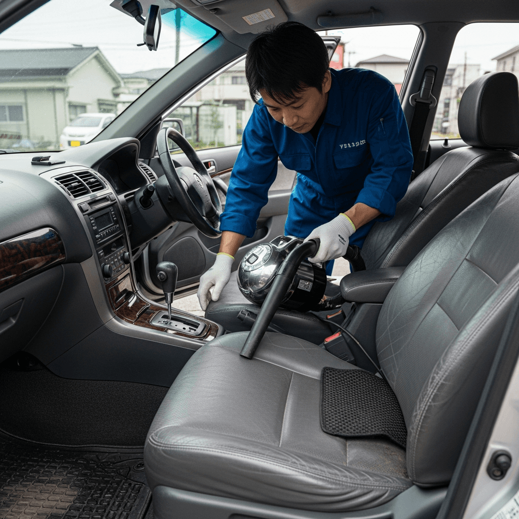ヴェロッサは第一印象が査定の8割を決めます。シート隙間のゴミ除去、マット洗浄、樹脂パーツ艶出しで新車級の清潔感に。特に臭いゼロなら「禁煙車」扱いで+5~8万円UP。