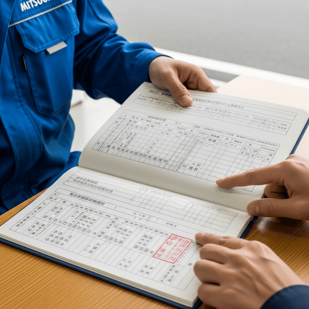 ビュートなでしこの整備記録簿に定期点検(12ヶ月・24ヶ月)の履歴が全て記載されていれば「管理の行き届いた車」と高評価。特にエンジンオイル交換履歴は重要で+6~9万円の効果。